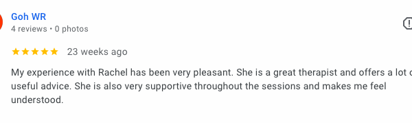 I am a counsellor based in Singapore. I support adults , adolescents and couples going through challenges related to depression, anxiety, relationship issues and stress. I am an LGBTQIA+ ally and take pride in creating an affirming and inclusive space for all clients. As someone with ADHD myself, my practice is neurodiversity-affirming and I will prioritise your autonomy, needs and strengths as we journey together.